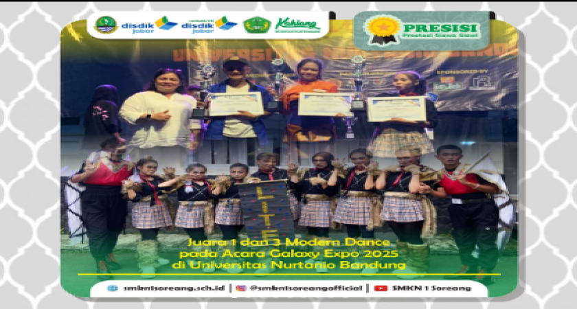 Minji ada informasi ini, selamat ya tim Modern Dance SMKN 1 Soreang telah memenangkan lomba dance di Universitas Nurtanio Bandung, pada acara Galaxy Expo yang dilaksanakan 23 April 2025, meraih Juara 1 dan 3, selamat ????????????